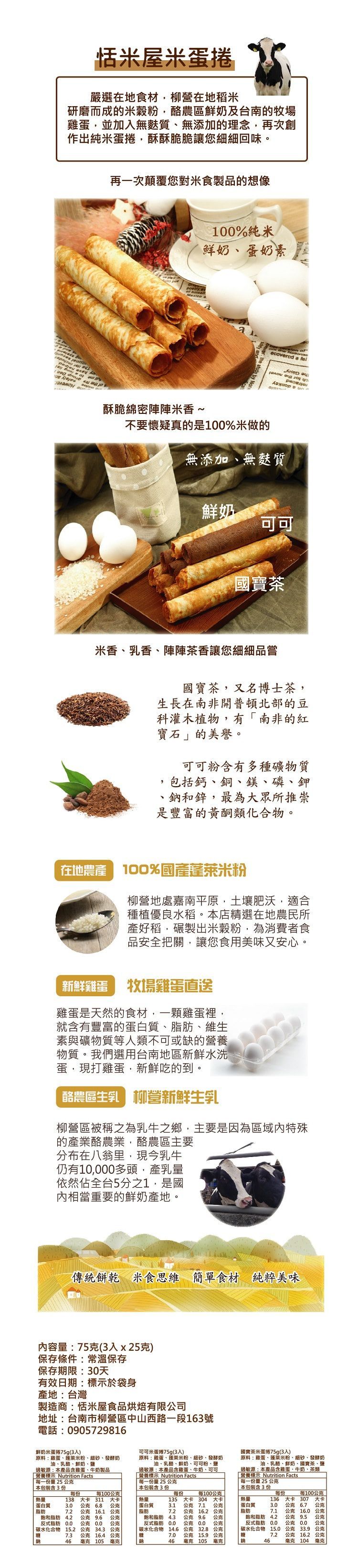 【100%純米、鮮奶、蛋奶素、無麩質 】