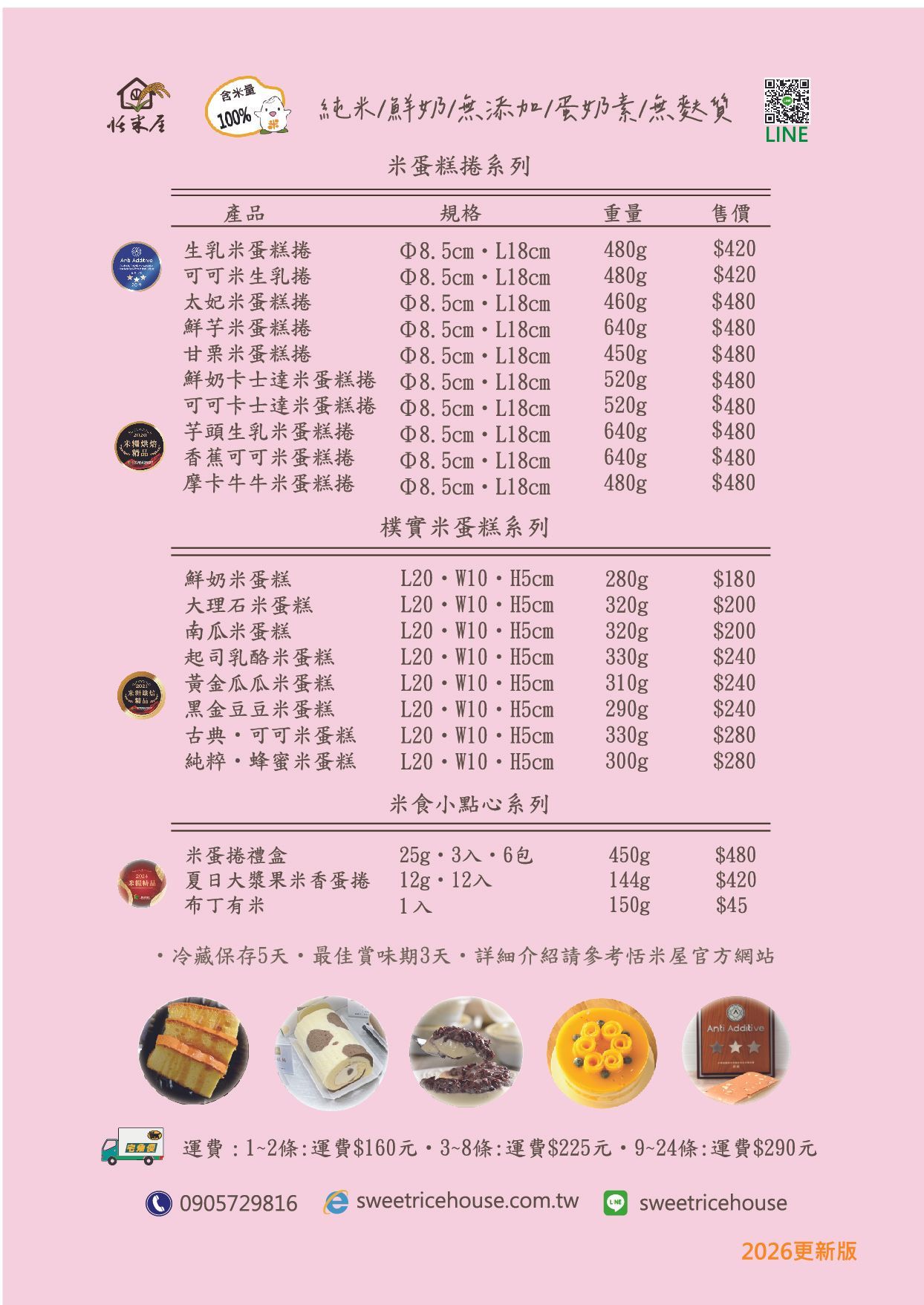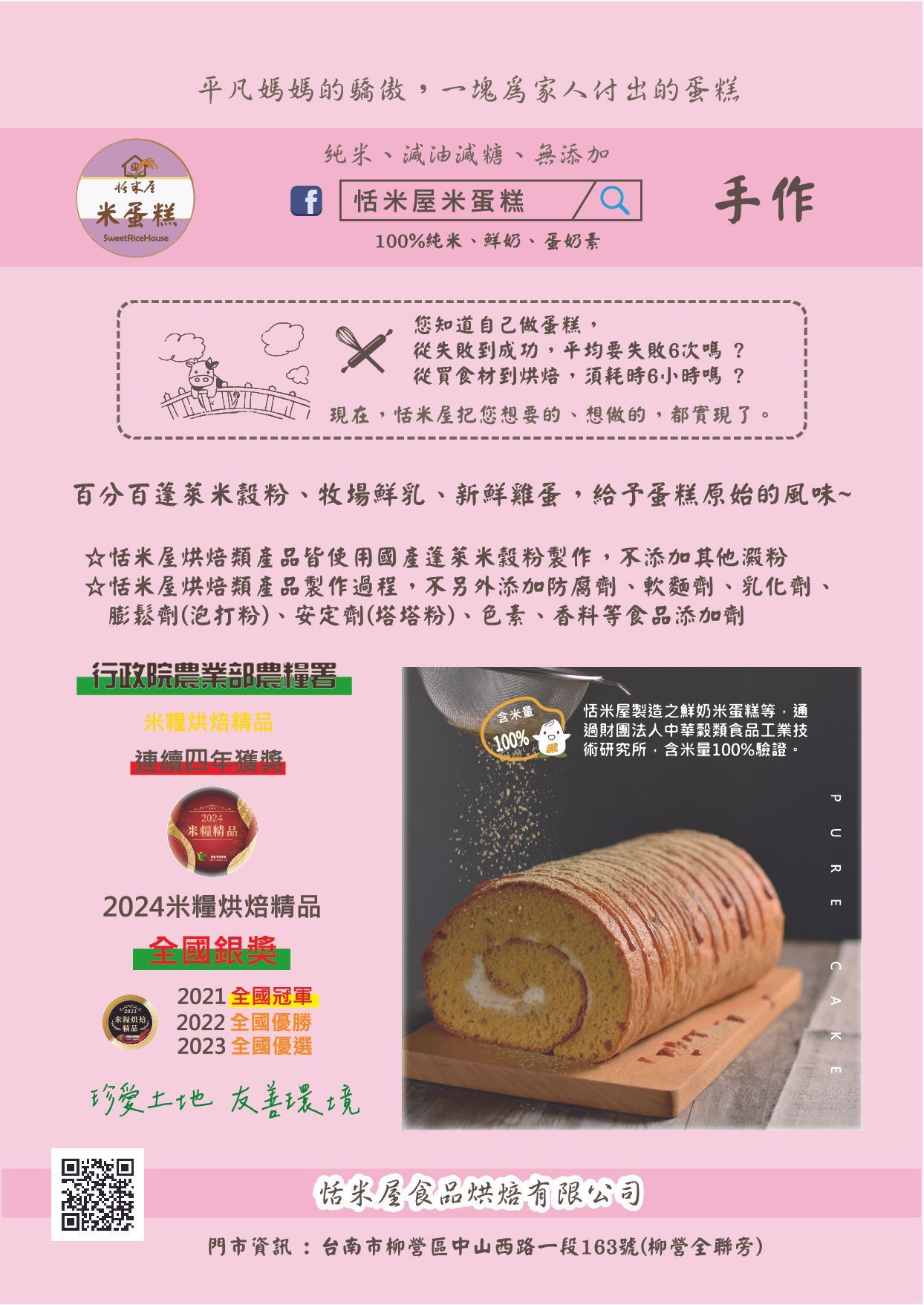 連續四年獲得米糧烘培精品獎,用獎項認證了健康的食物,不一定得犧牲美味。平易近人的價格,讓人人可輕鬆擁有美味的米蛋糕。